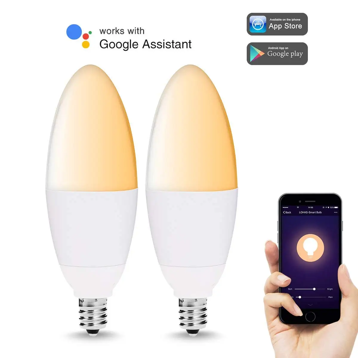 Smart Candelabra LED bulb works with Amazon Alexa and Google Assistant, much more convenient to control your lighting.
