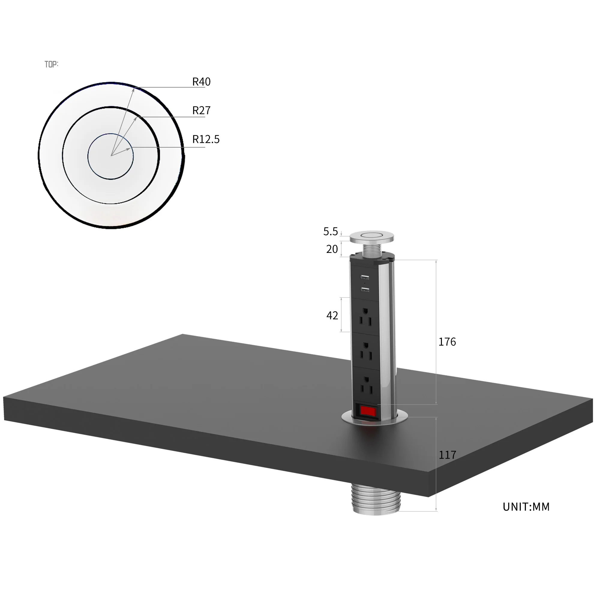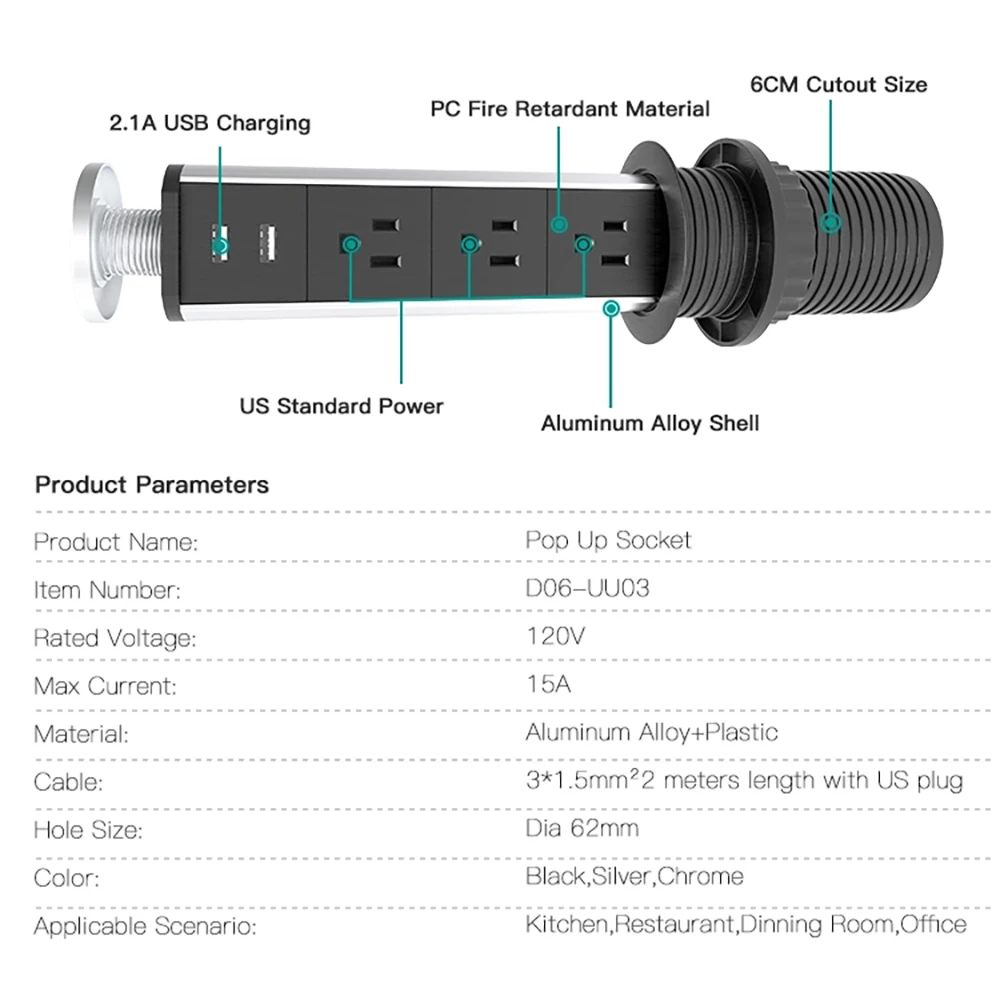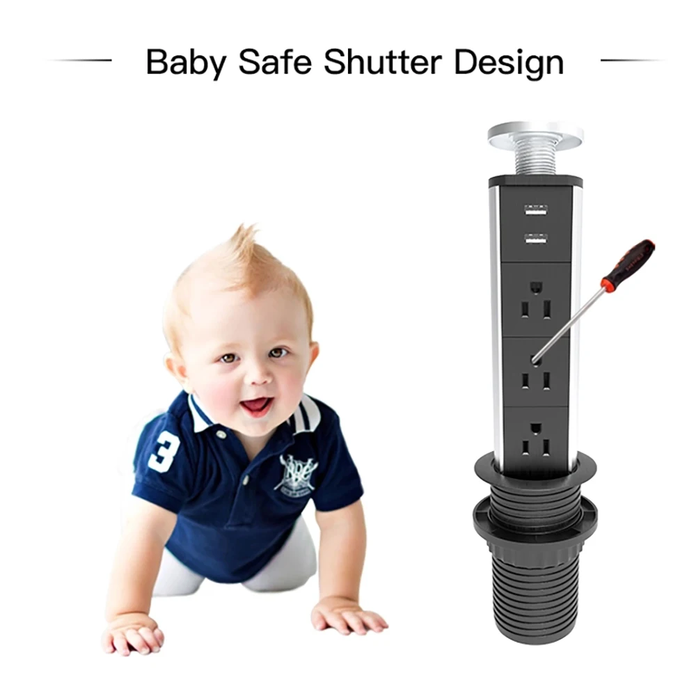US Pop up Power Motorised Desk Socket Outlet for Kitchen with USB Type-c Charger