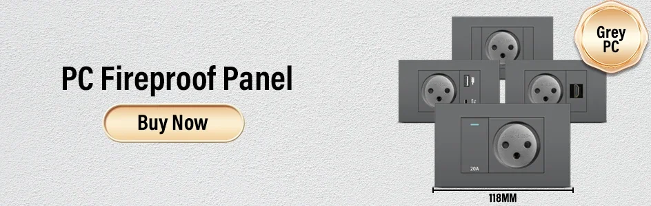 Melery Flame Retardant SC31 Panel 145mm Gray Israel Standard USB TypeC Fast Charging Wall Socket Switch TV Tel CAT5 CAT6