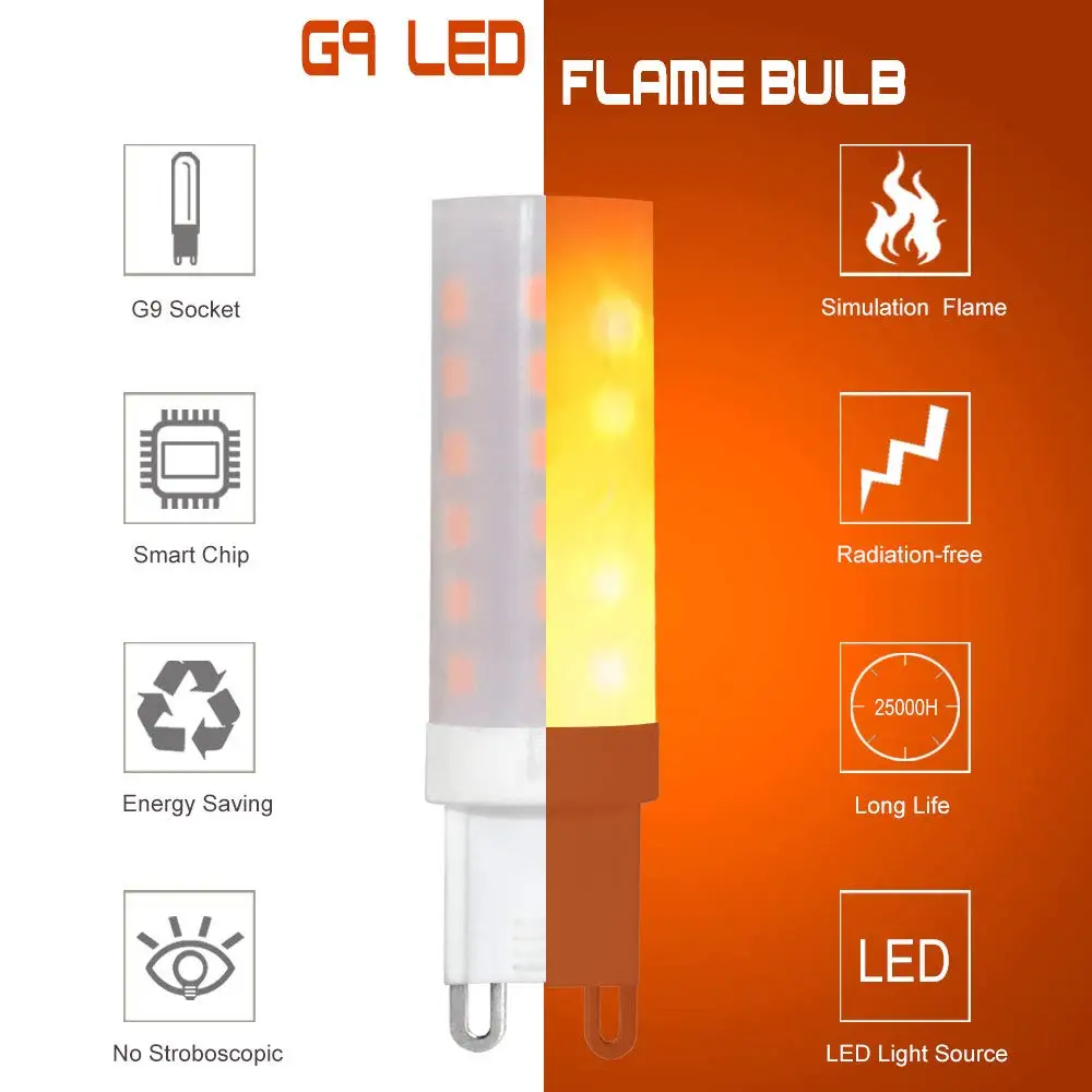 3Pack G9 0.5W LED Flame Lamp PC + Ceramic Flame Paint 10lm 36X2835 SMD AC 220-240V [Energy Class A]