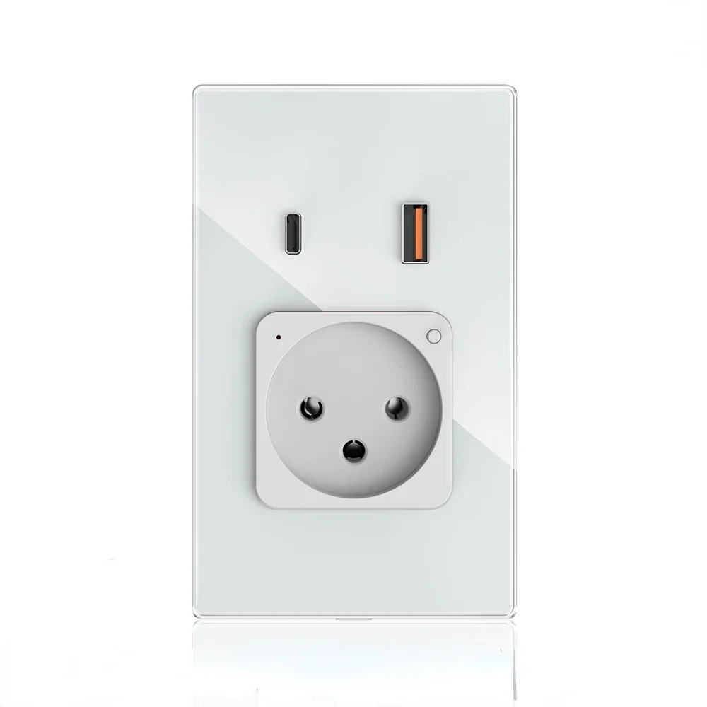 Tuya Wifi Smart Life Israel Power Wall Socket USB 4.8A Type C PD 20W for Iphone EU Plug Outlet Glass Panel by Alexa Google Home