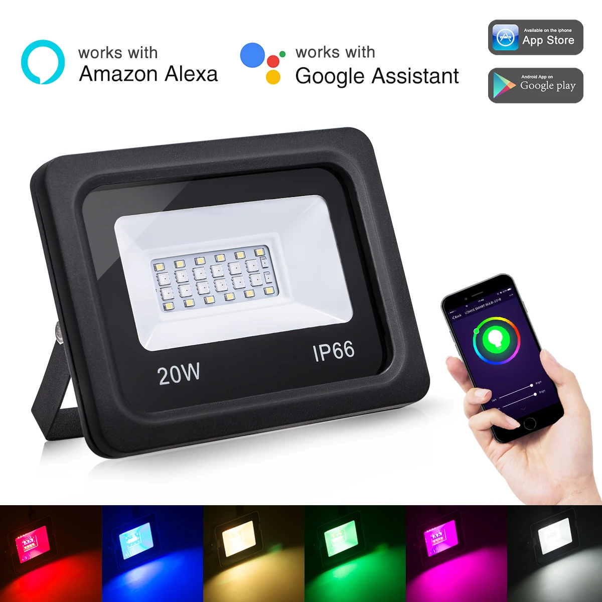 RGB Flood Light Smart Lighting LED Multicolor Floodlight Waterproof(IP65), 20W WiFi Control Lights, 8 Modes, Color Changing Indoor/Outdoor Security Lights Spotlight, LED Stage Party Lighting