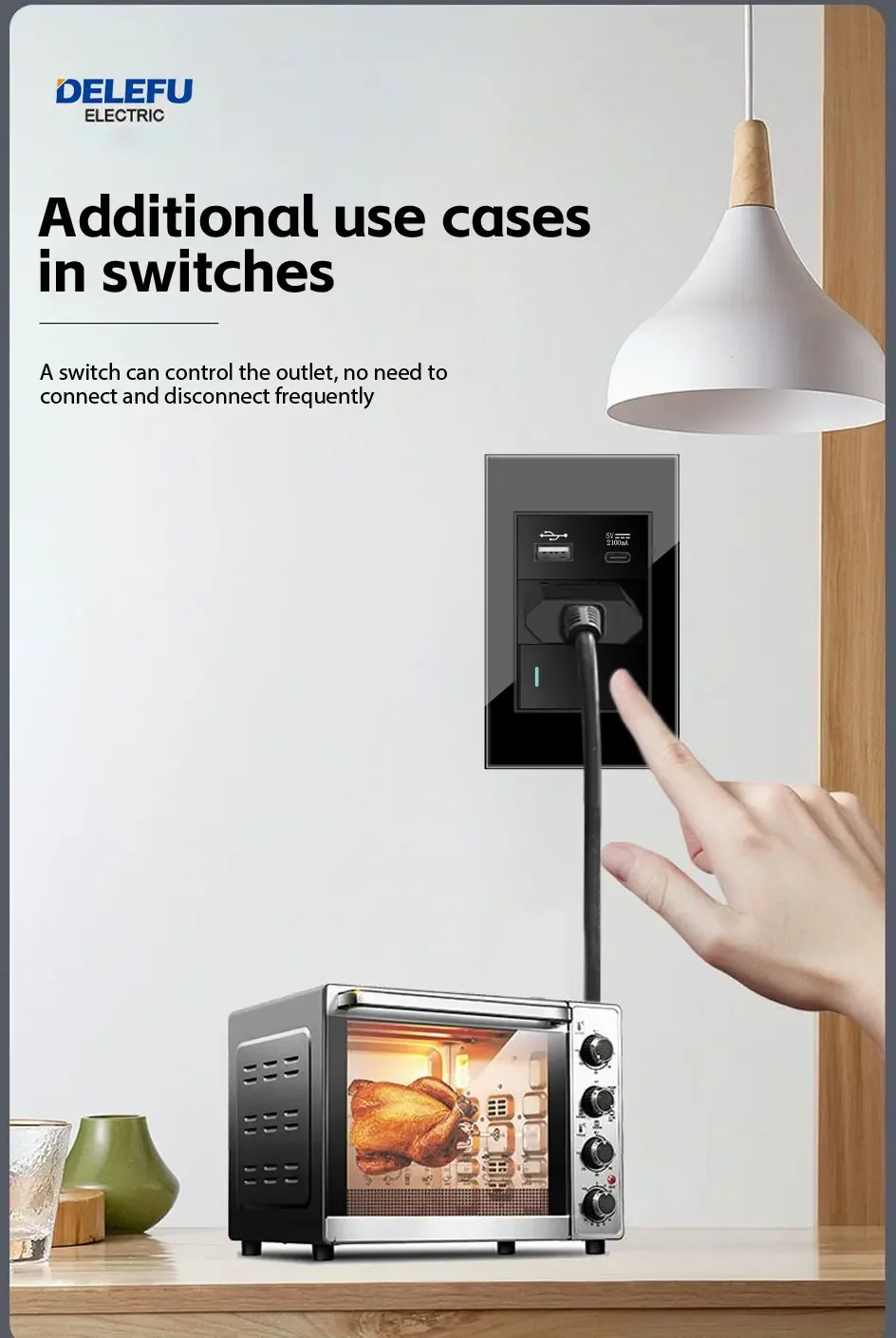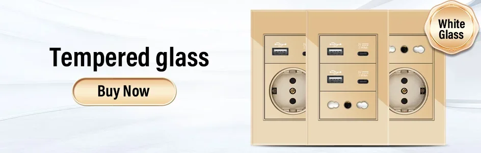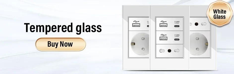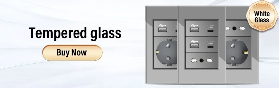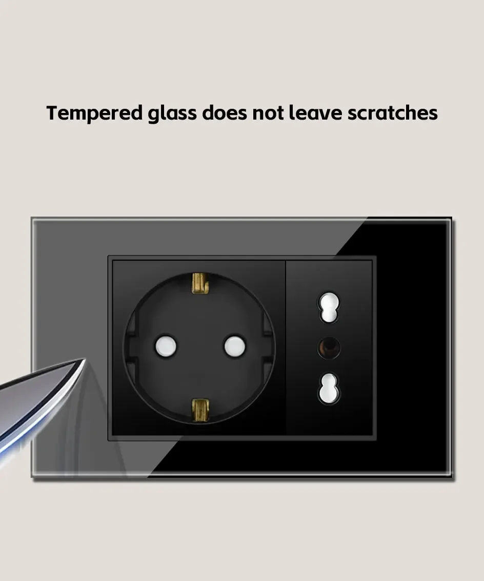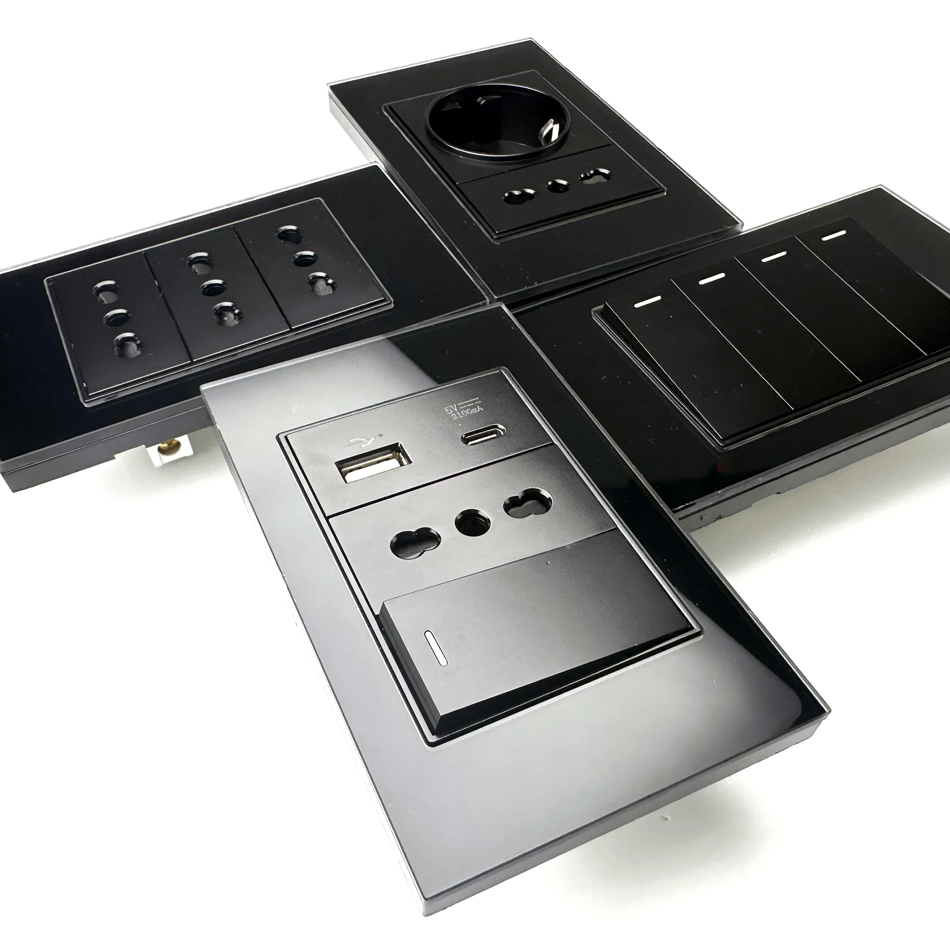 Melery Black Tempered Glass Italy Standard Home Office EU Outlet USb Type C Chile Korea Wall Socket Light Pressure Switch 118