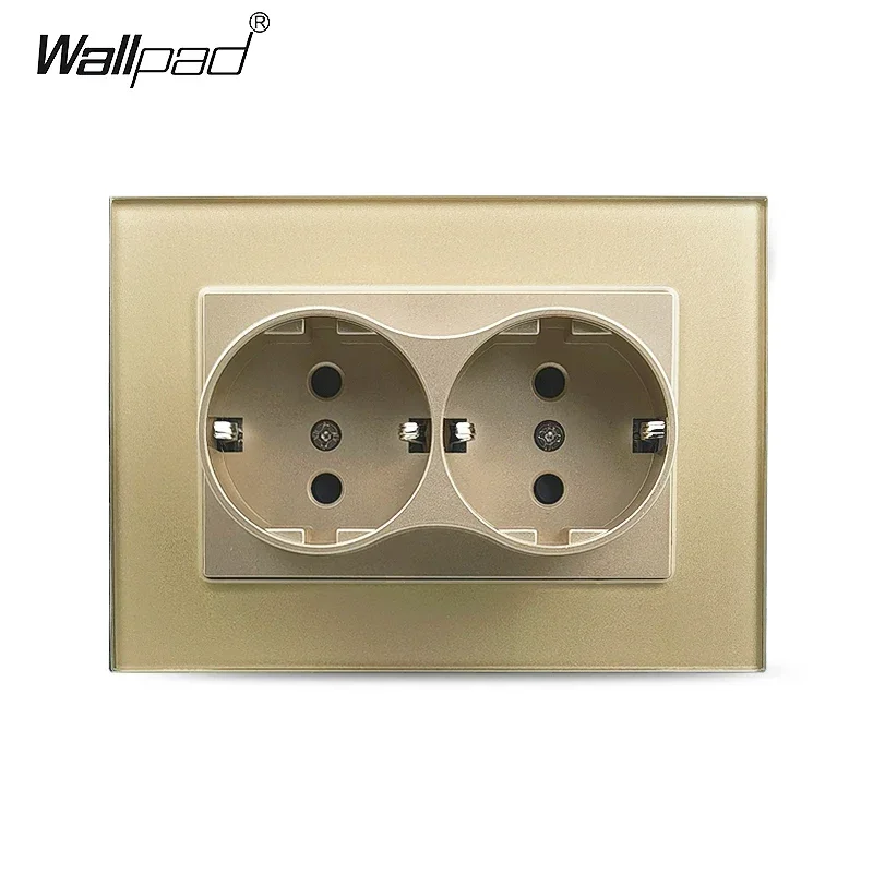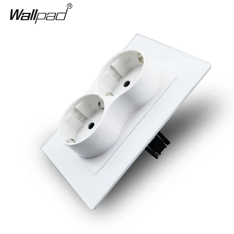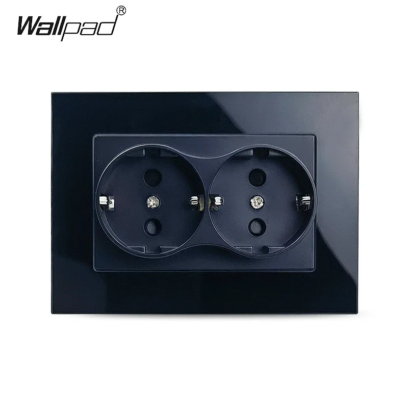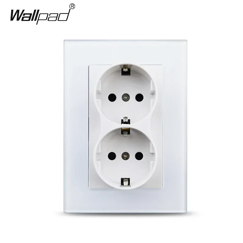 Double EU Wall Electrical Power Sockets White Black Crystal Glass Panel 2 European Russia Outlets for one Hole 120*86MM