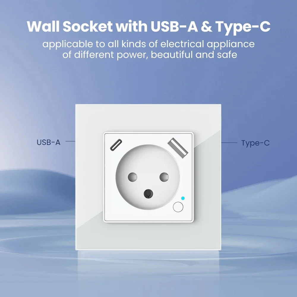 Shawader Tuya WiFi Smart Israel Wall Socket EU Standard Power Plug Outlet USB/Type-C Charge Port Wroks With Alexa Google Home