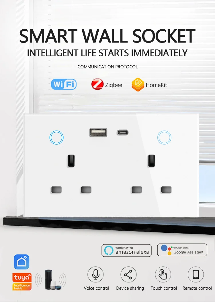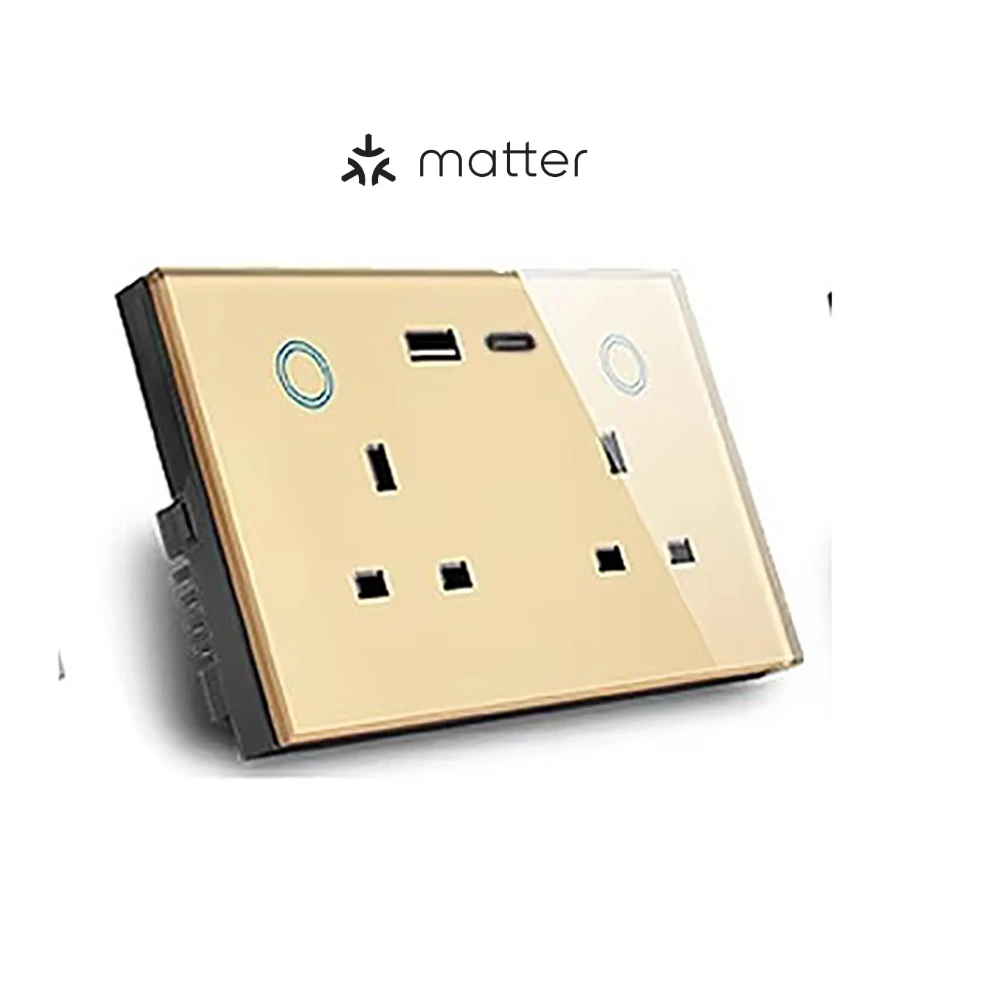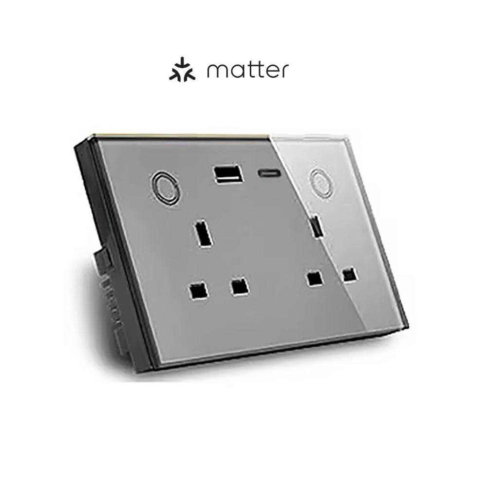 Melery Matter Thread Smart UK Wall Socket Glass USB Type-c Plug Outlet Fast Charge 20W by Homekit Alexa Google Home SmartThings