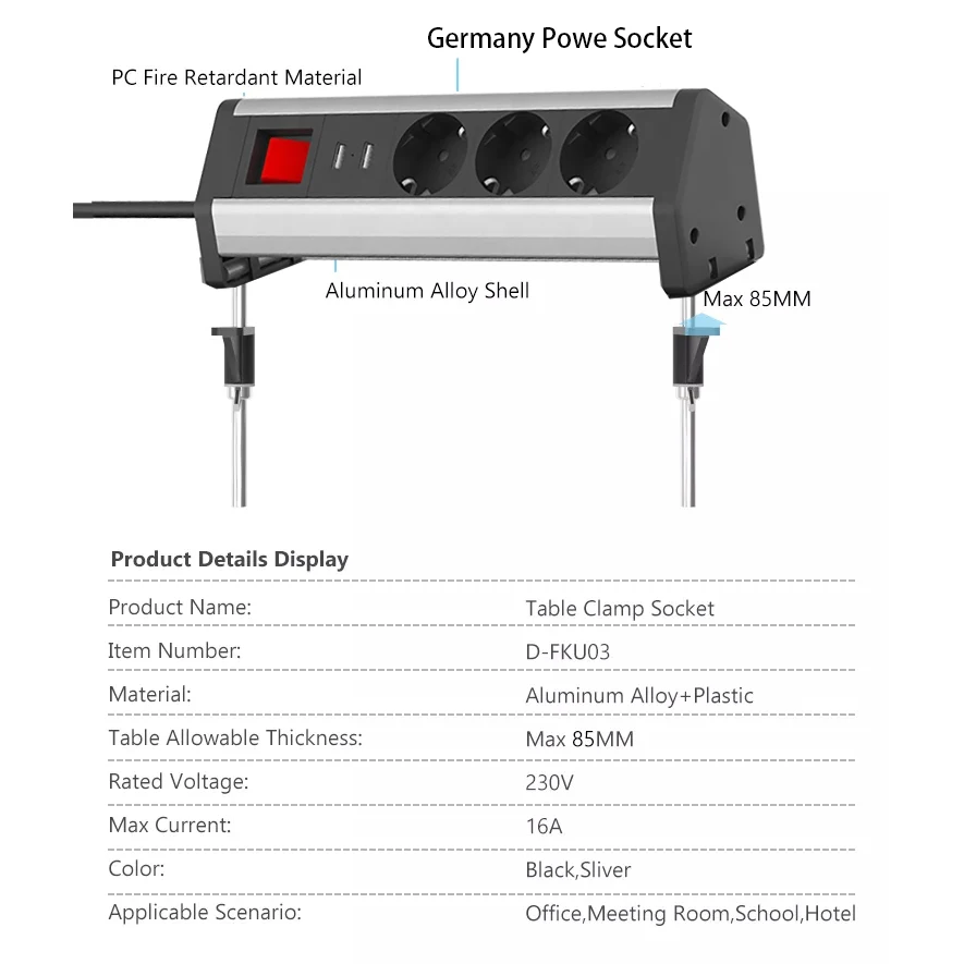 German electrical plugs sockets clamp on conference table socket with usb port