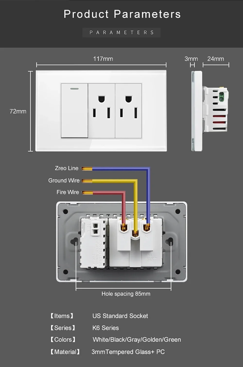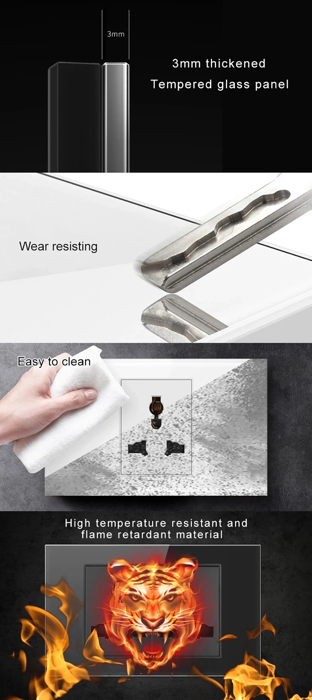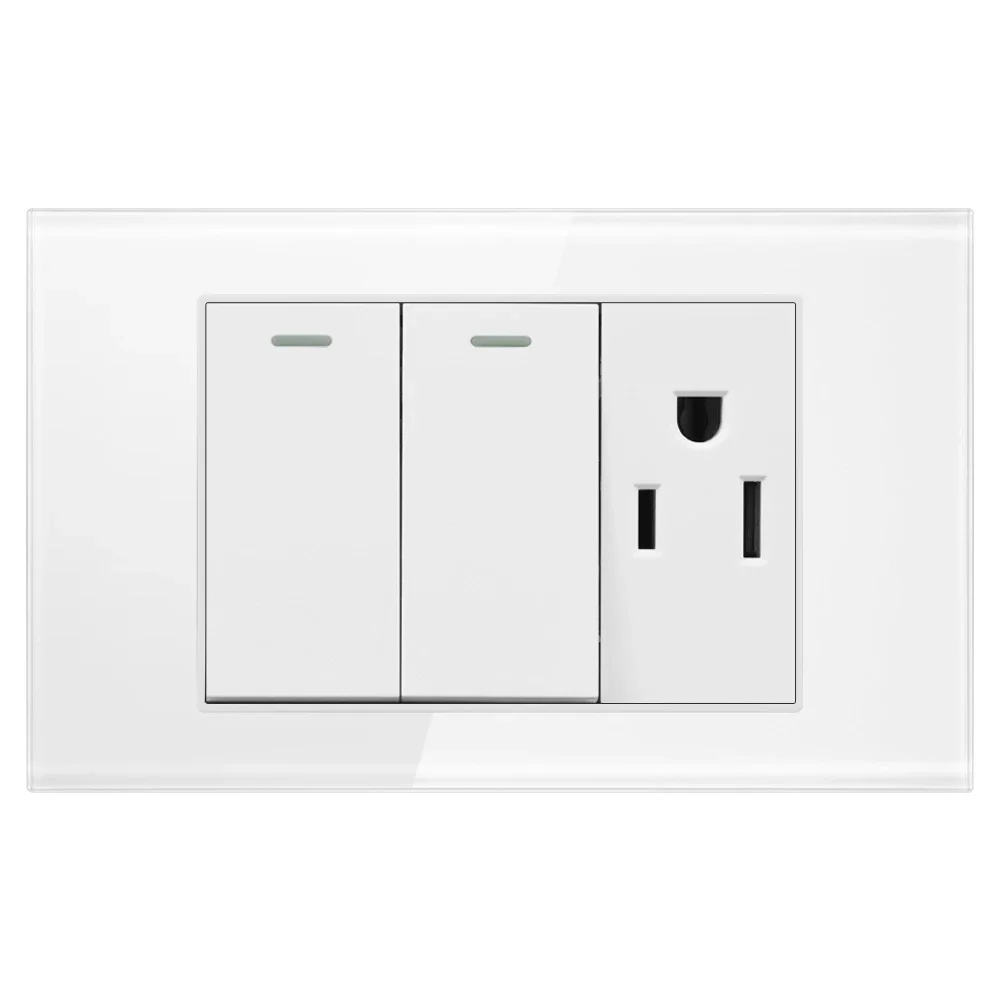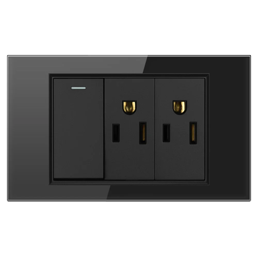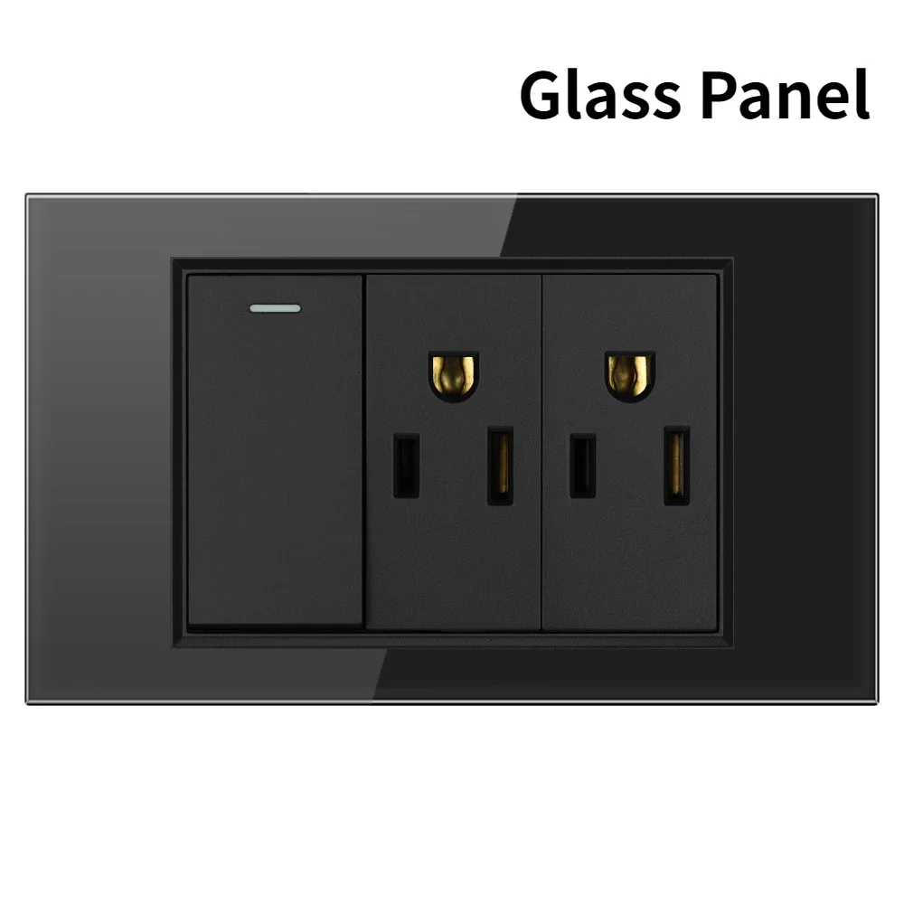 Power Wall Socket Light Switch Double 1/2 Pole Plastic Glass Panel Outlets Plate US Modular Mounted Home Office Electrical Appliances