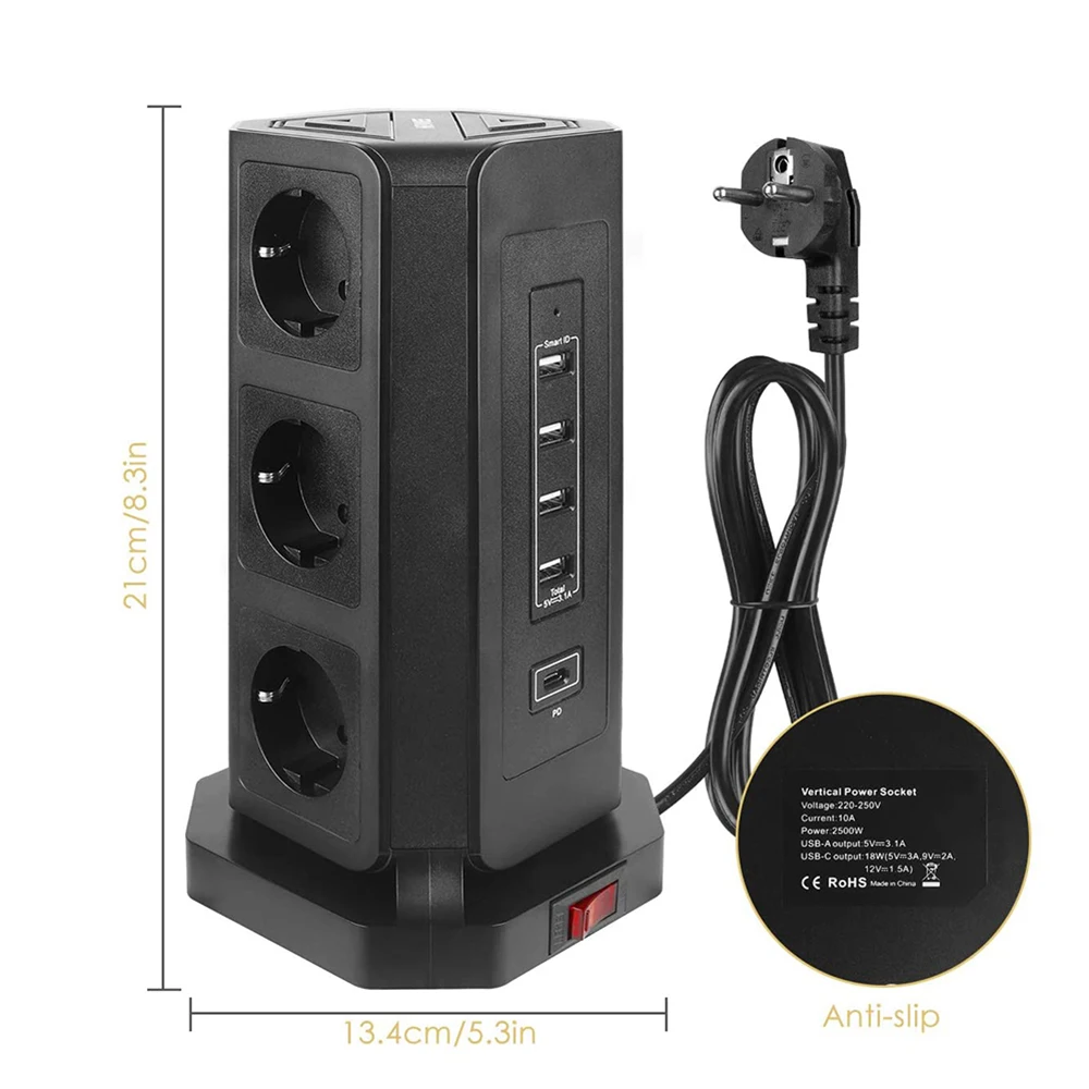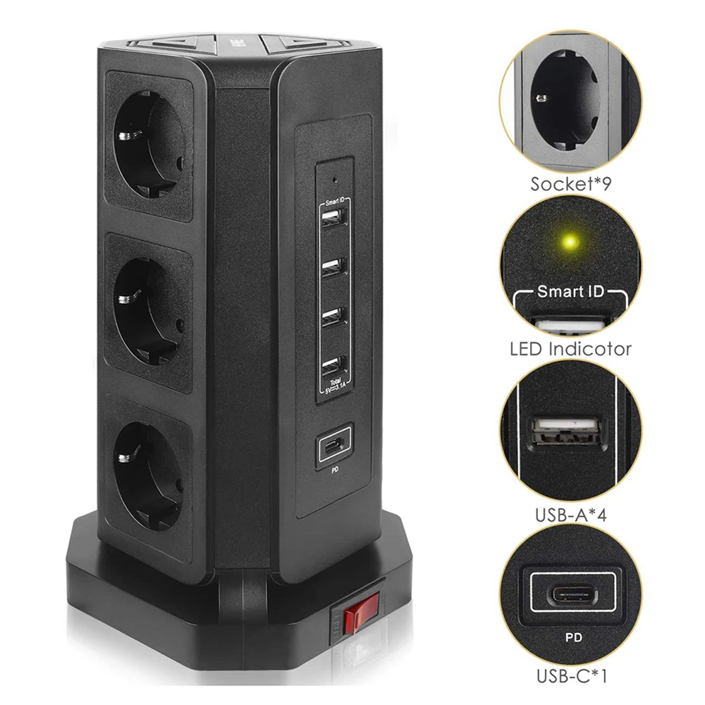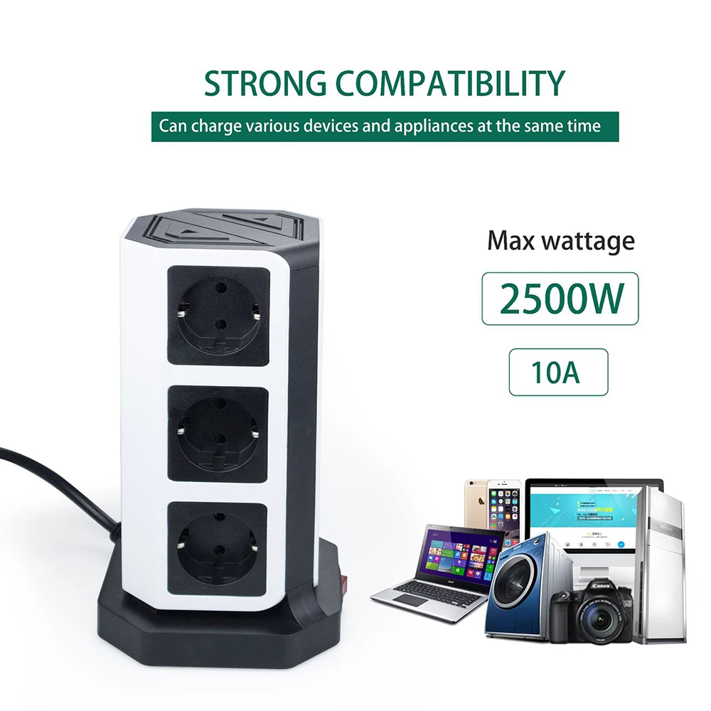 The tower power supply board is ideal for home and office use, and the power supply is properly arranged. Make sure the total charger rating is less than 2500W.