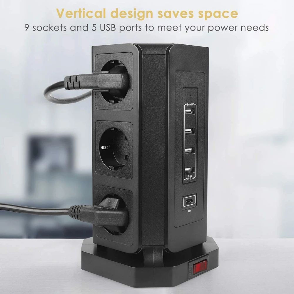 Suitable for family, office, outdoor work 9-slot power board with 5 USB surge and short circuit protection Non-slip design