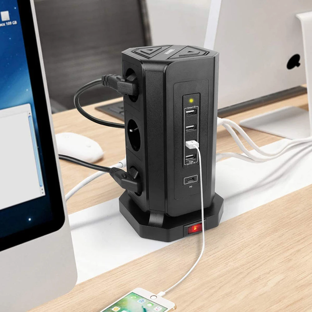 With 9 sockets, 4 USB-A and 1 USB-1 ports suitable for mobile phones, laptops and lamps, more electronic devices can be charged and you will have a clean and tidy environment. It's great for our office and family.