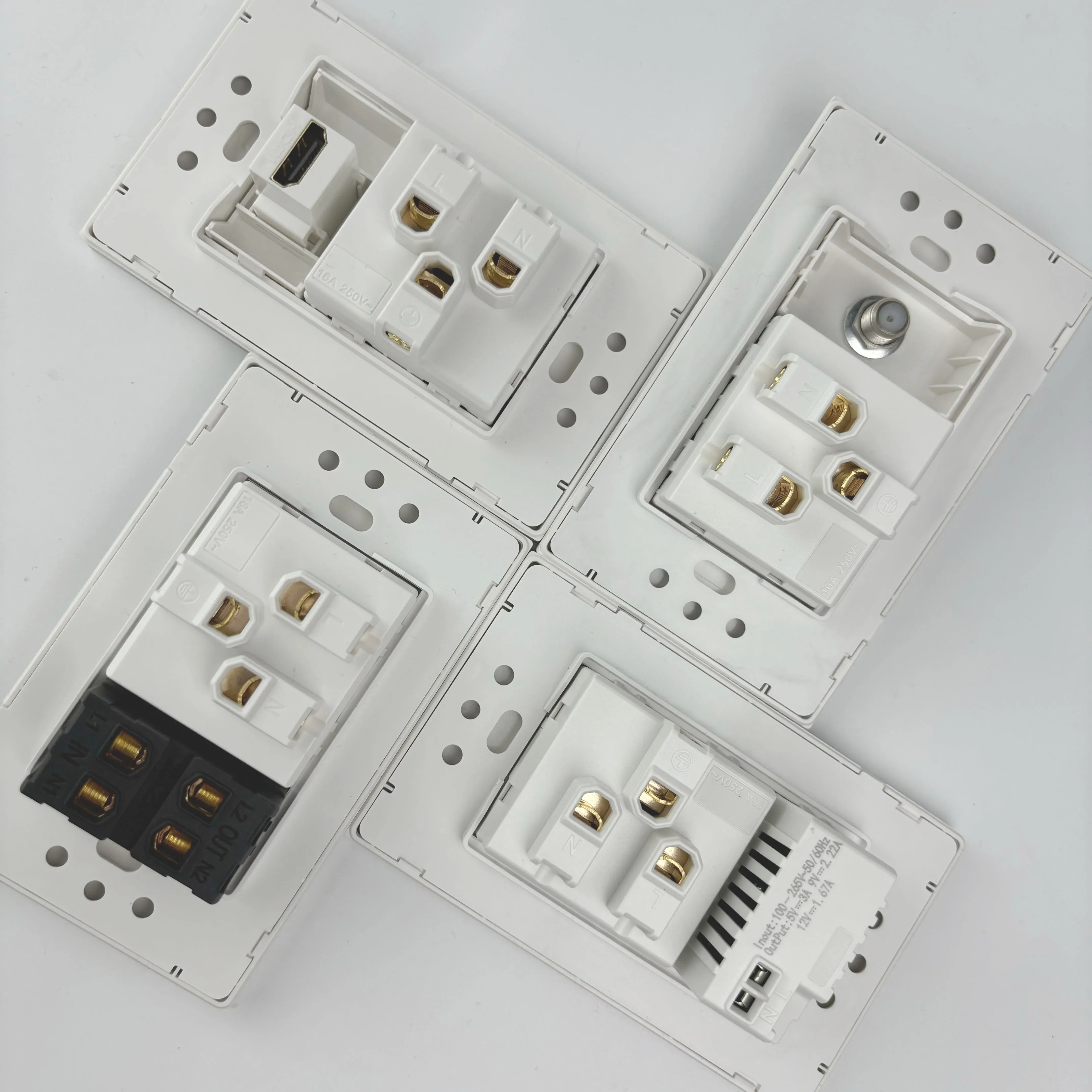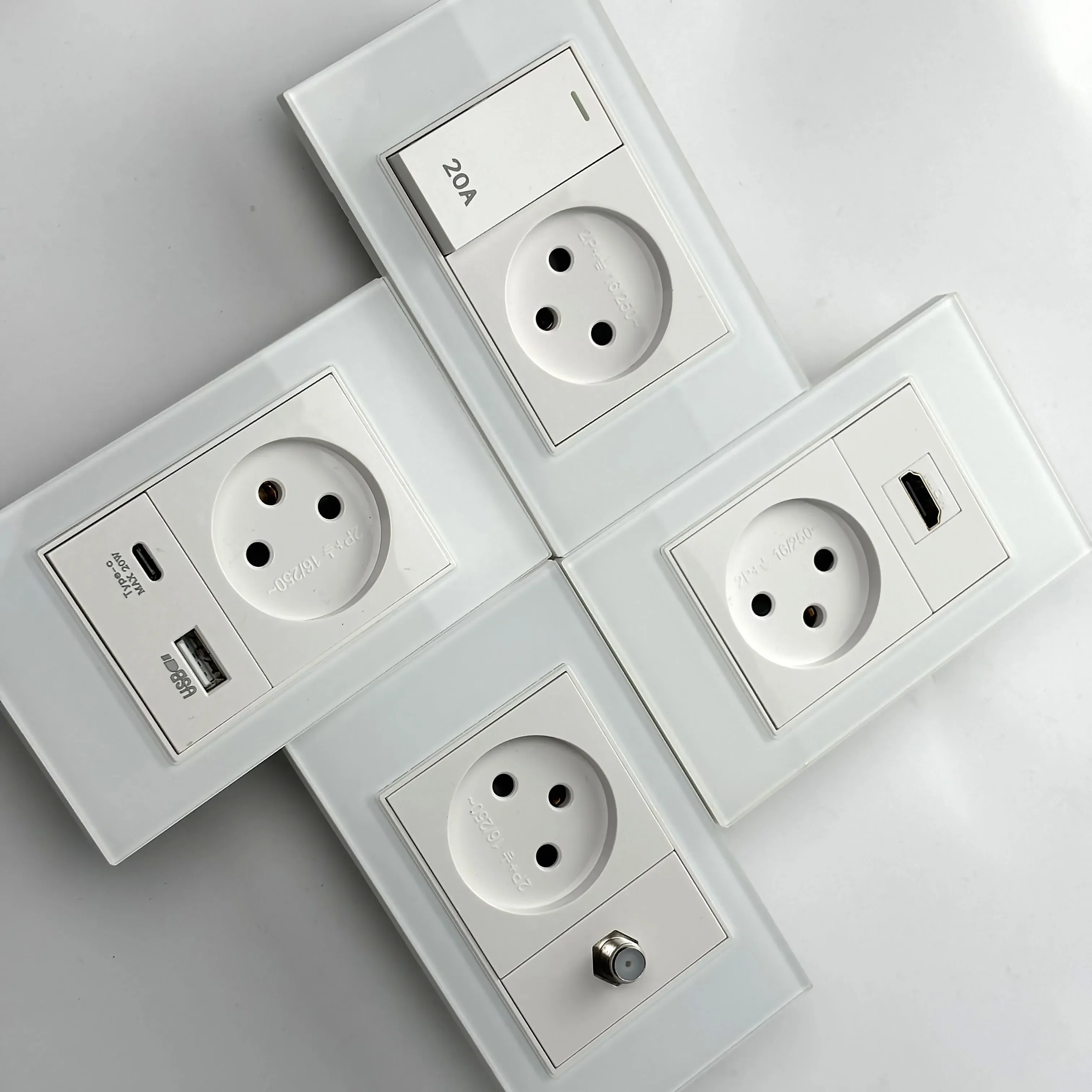 Melery White Tempered Glass Israel Standard USB Type C Fast Charging Wall Socket Light Switch Satellite TV Tel CAT5 CAT6
