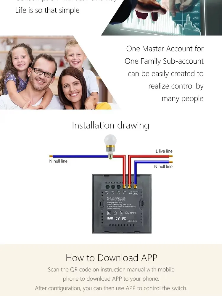 -High-quality and luxury design with Big physical button for push control. You can install it in your bedroom or living room. Its minimalist design complements any interior decor, making it not just a switch, but a statement piece.