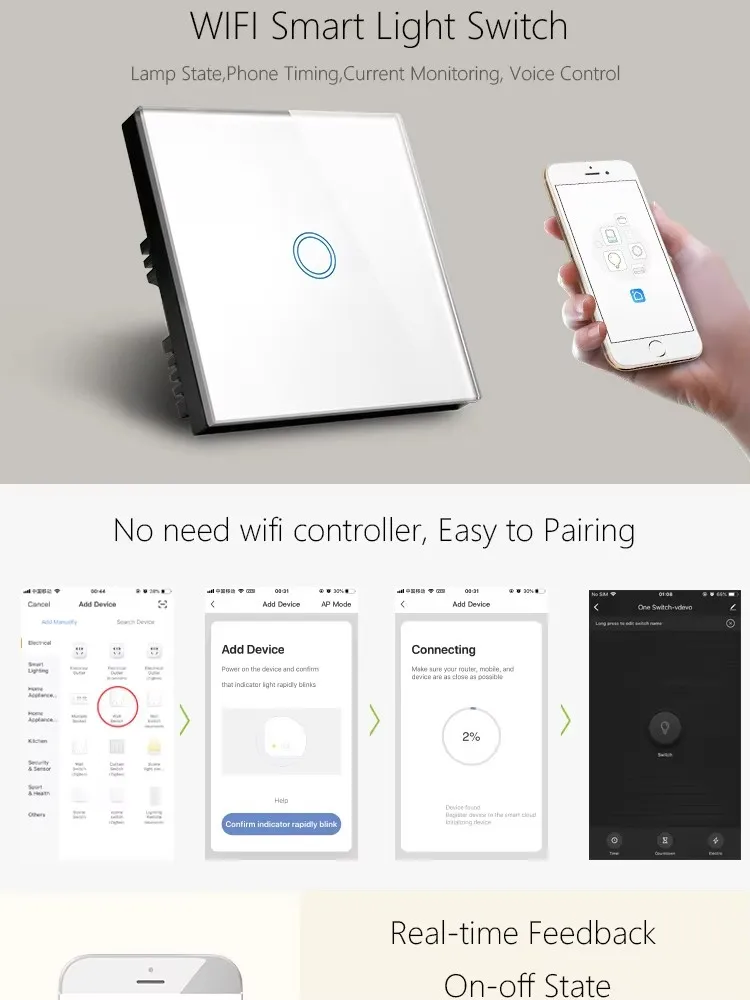 -The intelligent timer switch will automatically turn on after setting a timer for this switch, which is essential for daily scheduling, and bring you a comfortable and intelligent lifestyle.