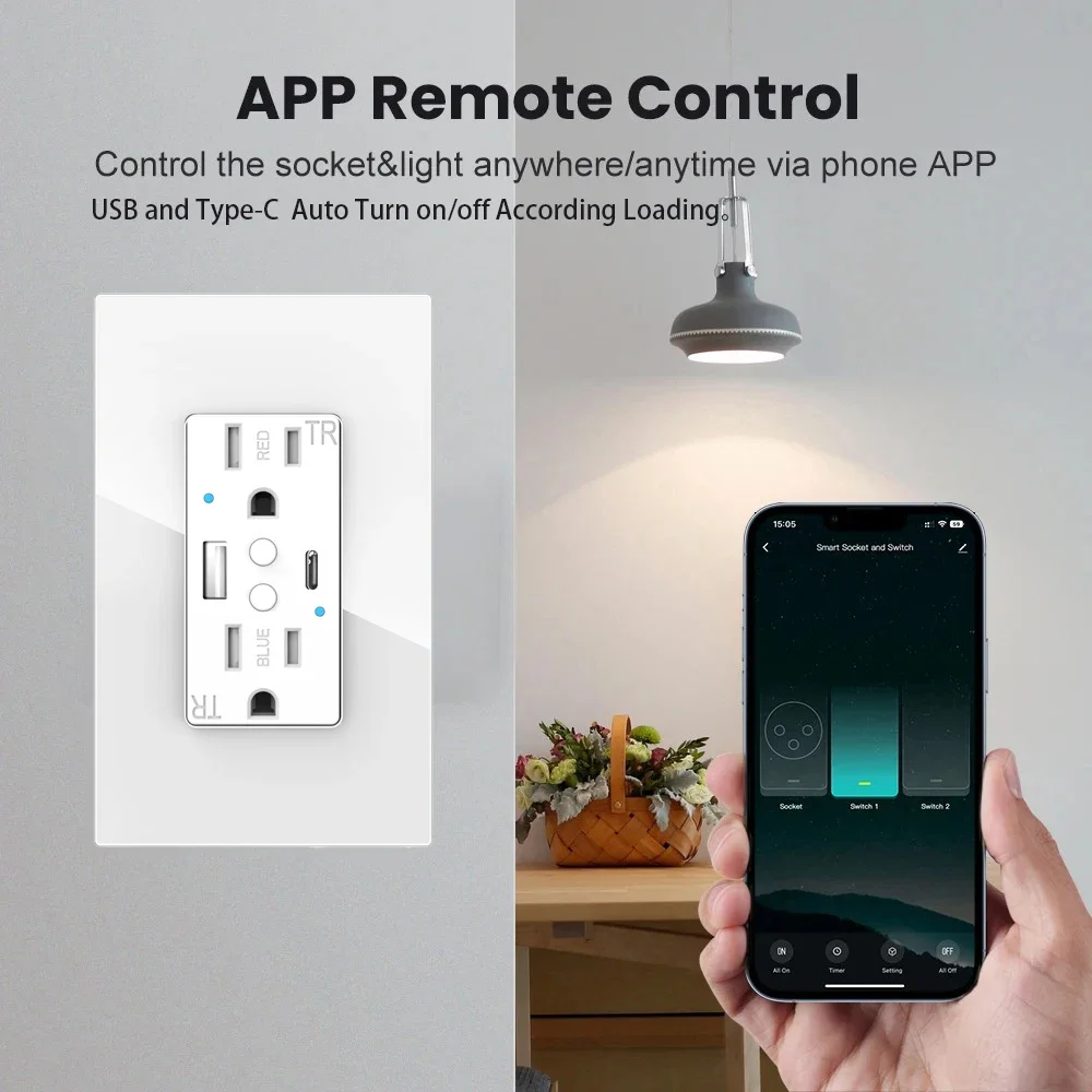 With Smart Life APP. Smart WiFi Wall Outlet can control your lights and appliances connected to the smart Socket on or off wherever you have Internet from your smartphone or tablet by using the free app (smartlife ) from Android or IOS devices. Note: The WiFi Standard is 2.4GHz.
