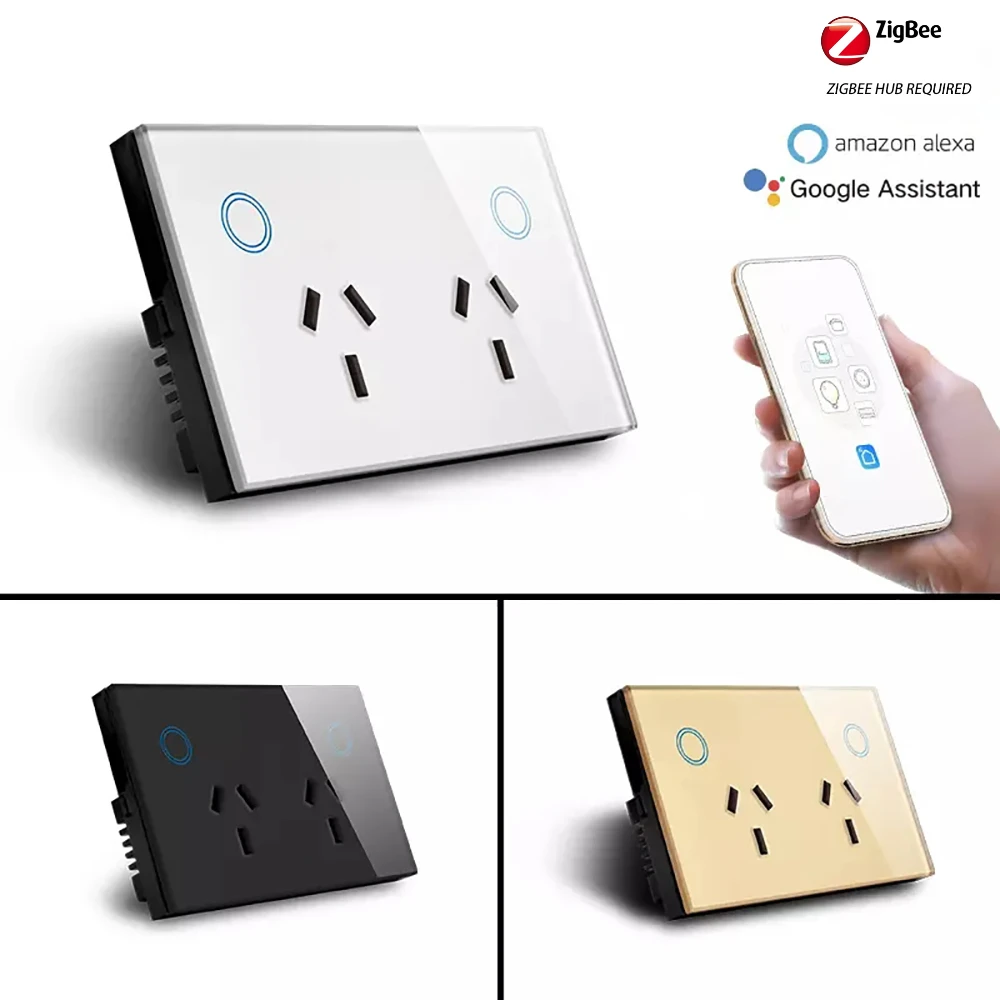 Melery Zigbee Smart Wall Socket 2 Ways AU Electrical Plug Outlet 10A Power Touch Sensor Switch Wireless Remote Alexa Google Home