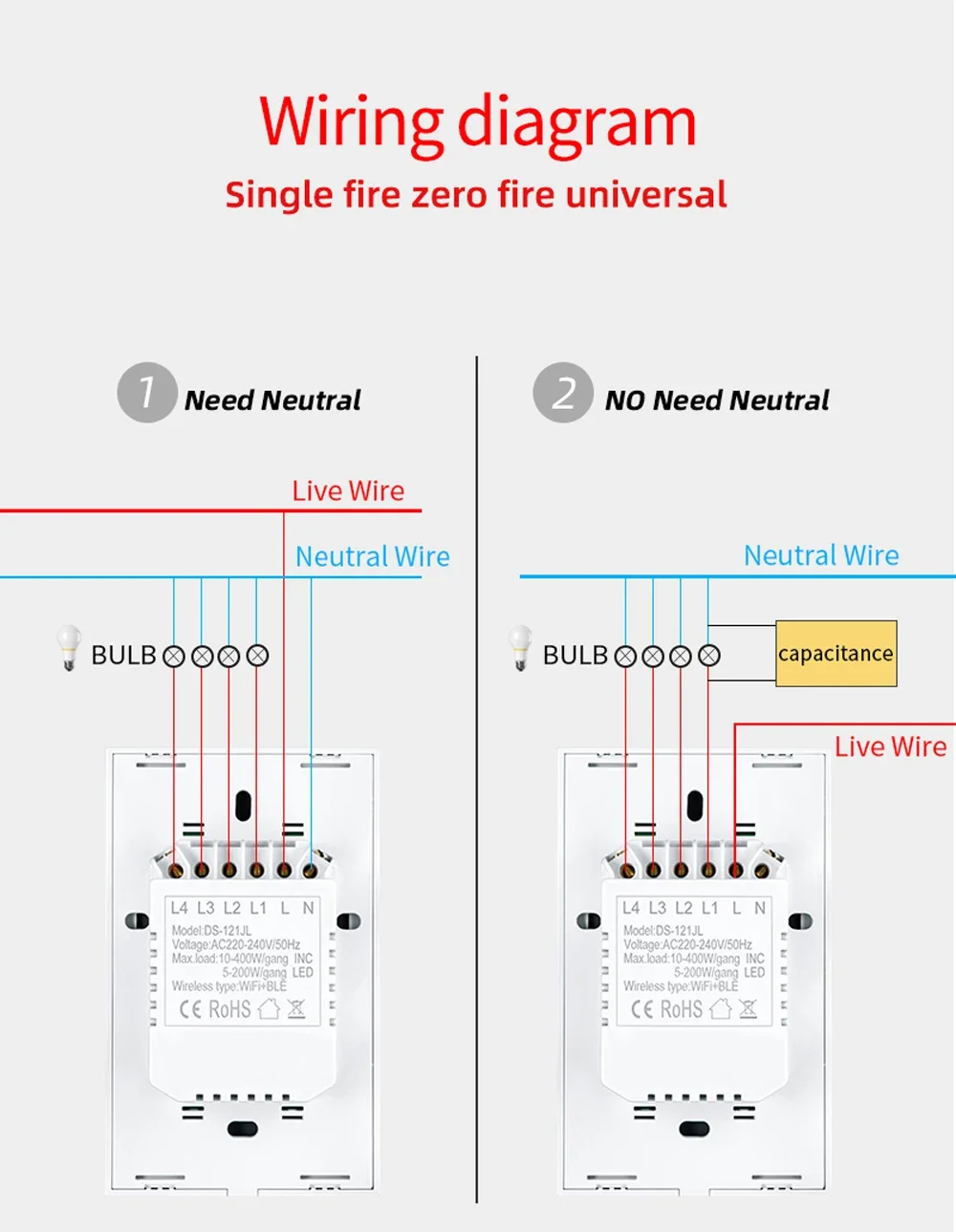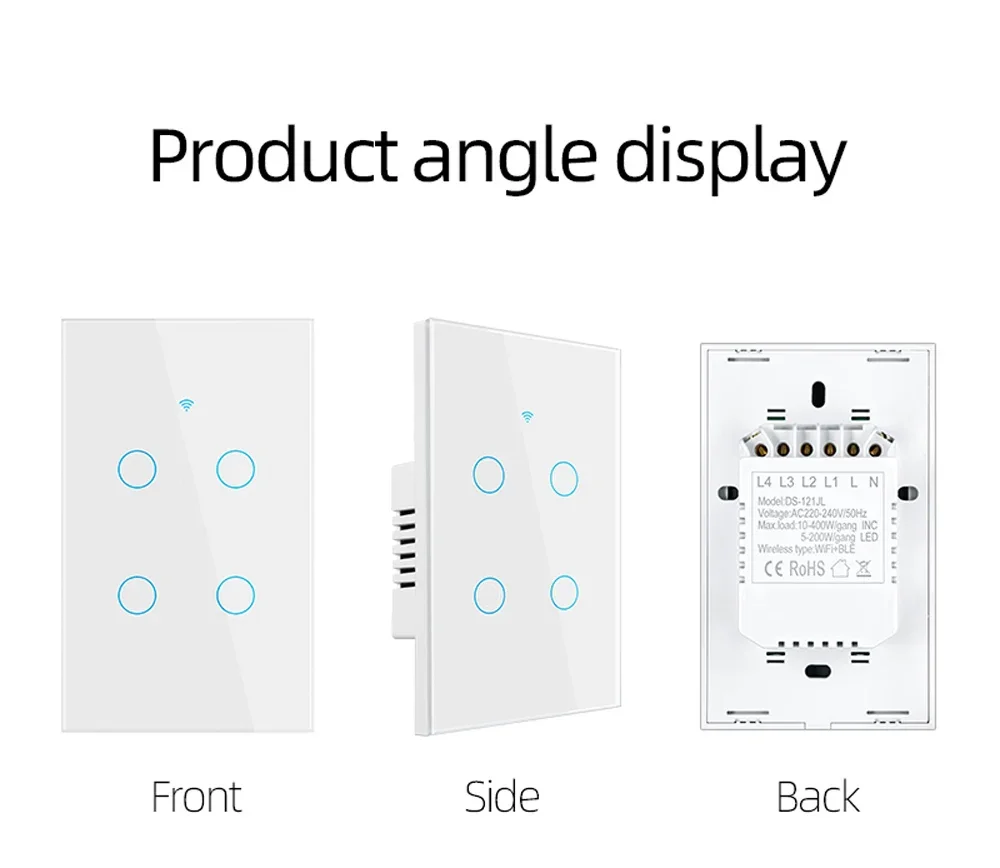 6.Seguridad y certificación: El interruptor de pared adopta materiales de primera calidad, como carcasa resistente al fuego, conexiones de bronce fosforado y PC avanzado + vidrio templado, puede proporcionar prevención de incendios y protección contra sobrecargas para proteger a su familia.