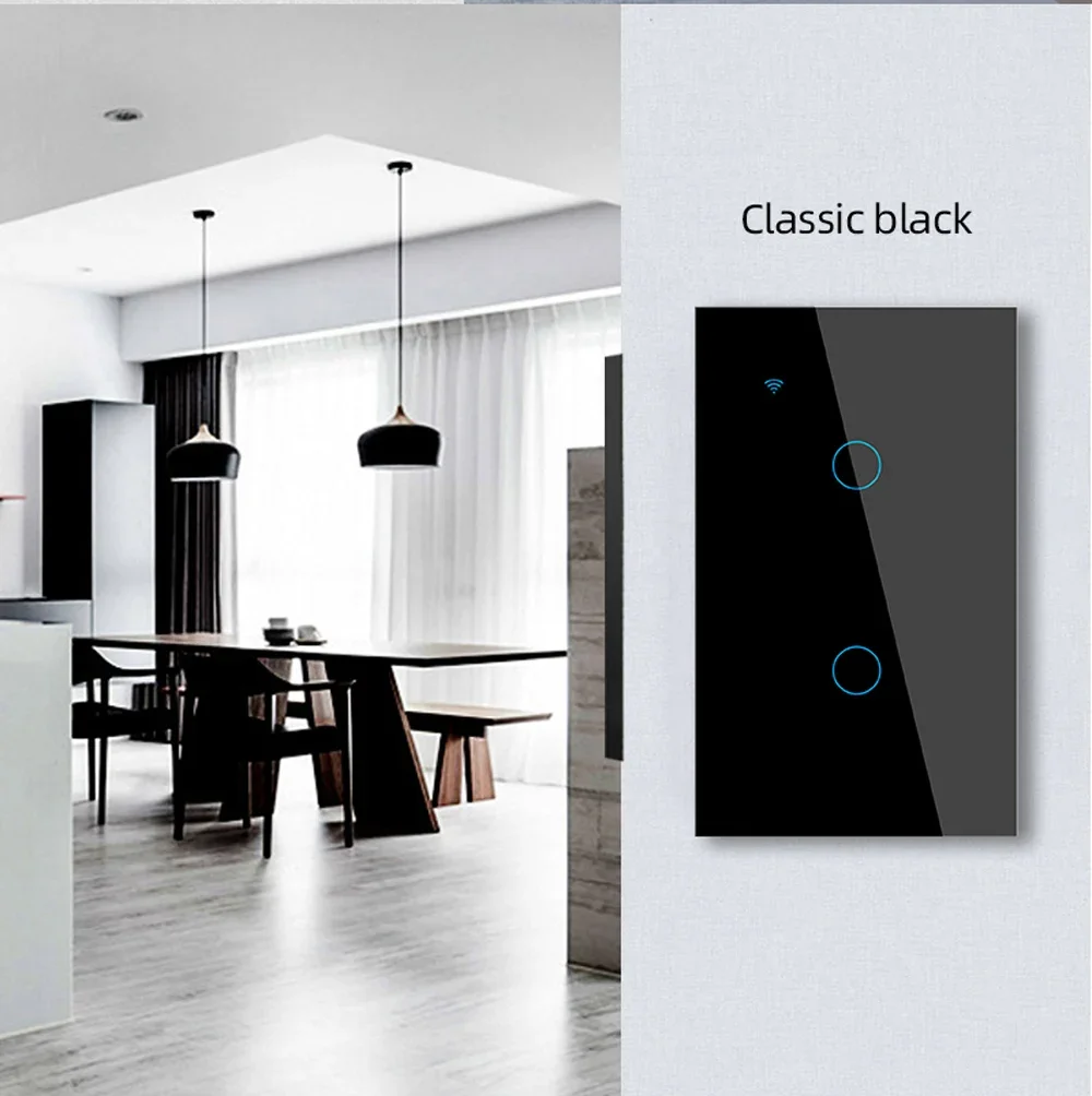 Shawader Smart WiFi Tuya.Light Switch Touch Sensor Glass Panel with/without Neutral Wire US,by Alexa Google Home 1/2/3/4 Gang