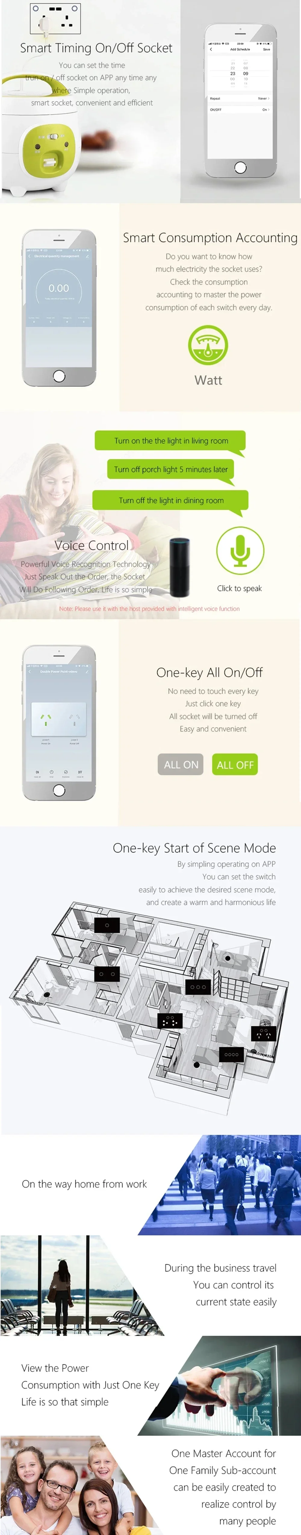 home appliances, smart phone or other device can control the socket and track the status