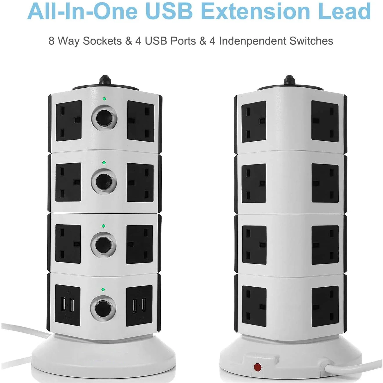 4 independent switches in each layer allow you to switch on or off as needed,the USB Extension Lead makes your life more convenient and safer